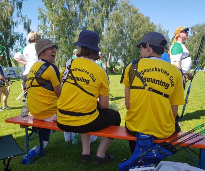 Beispielsweise wie auf der Schießlinie leicht geschimpft wird, falsches ankern, Verhalten des Bogens bei Hitze, beim Turnier immer schlechter sein als beim Training – von wegen und Süßes geht immer.